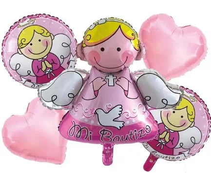 Set 5 Globos Mi Bautizo Rosado